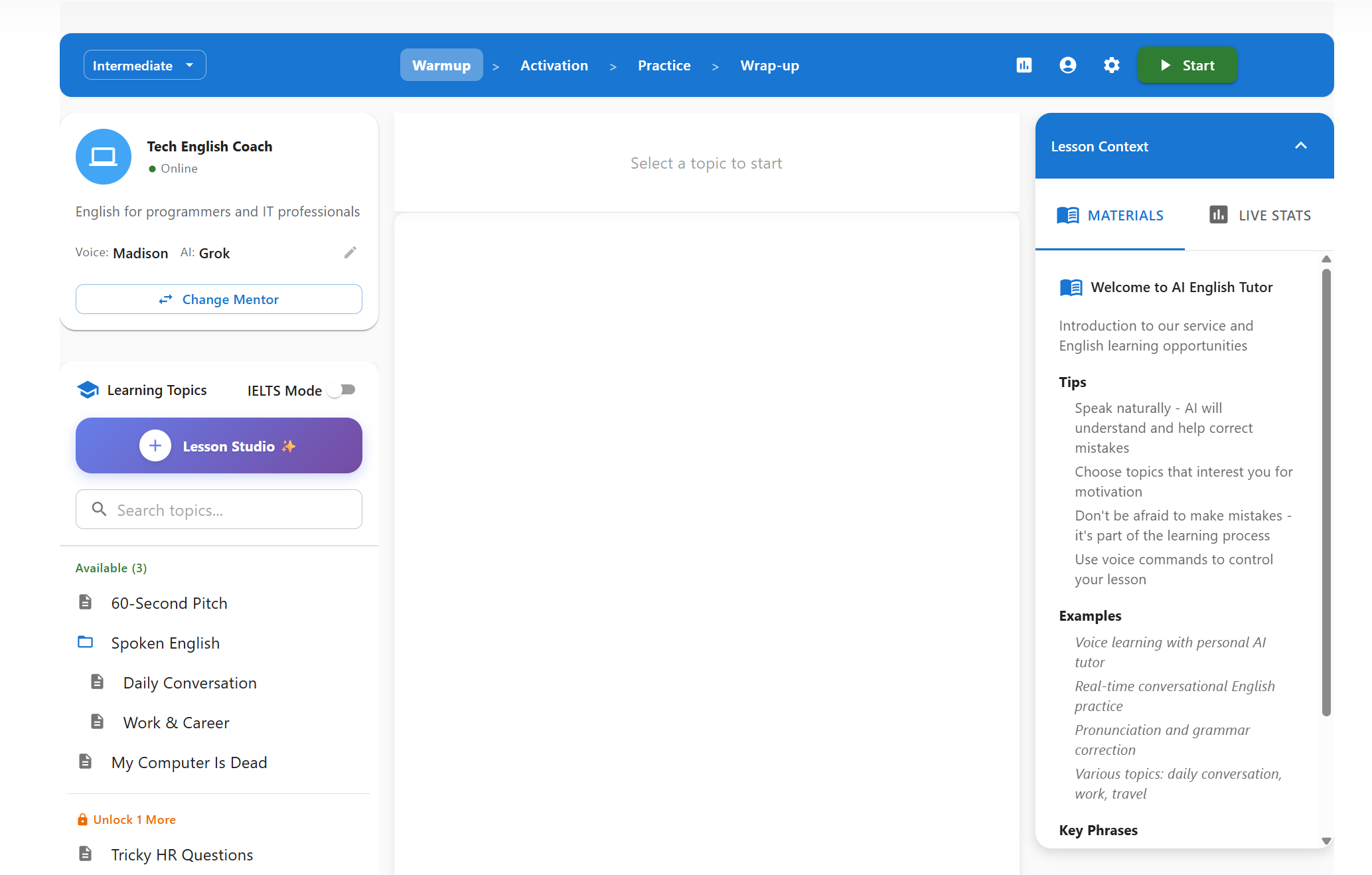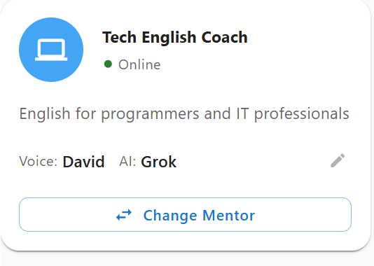 Switch between 20+ specialized mentors instantly. Negotiate a salary with a Business Coach today, and practice casual small talk with a Friendly Buddy tomorrow.